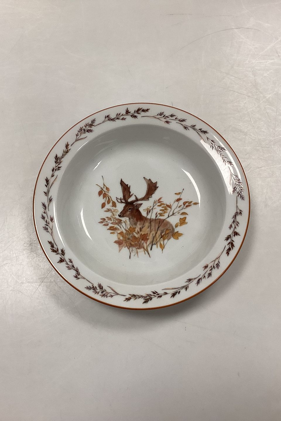 Mads Stage Jagtstellet Dyb Tallerken. Producent: Seltmann Weiden. Motiv: Dådyr.