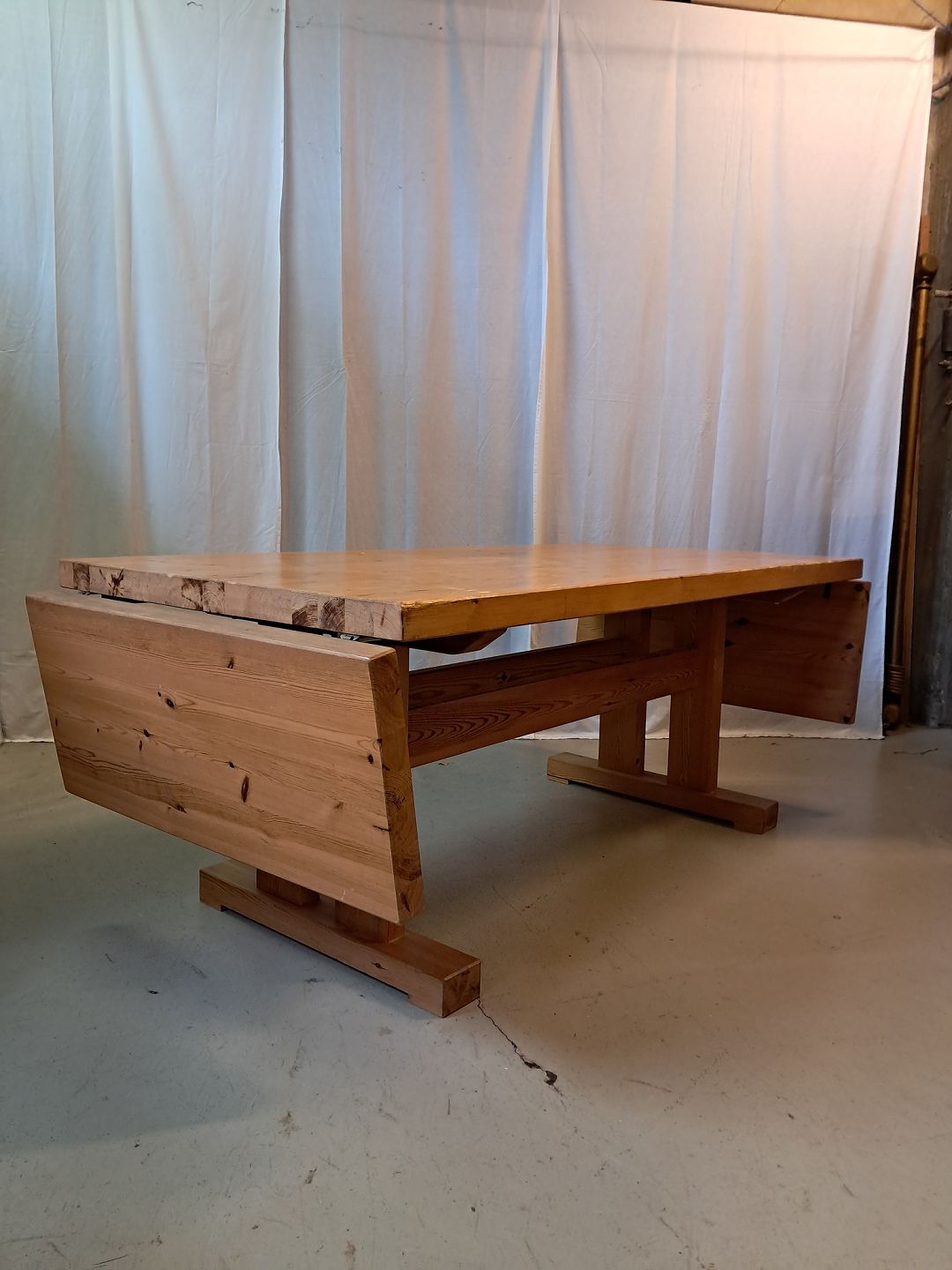 Spisebord i massivt fyrretræ med 2 klapper, fra 1980erne.