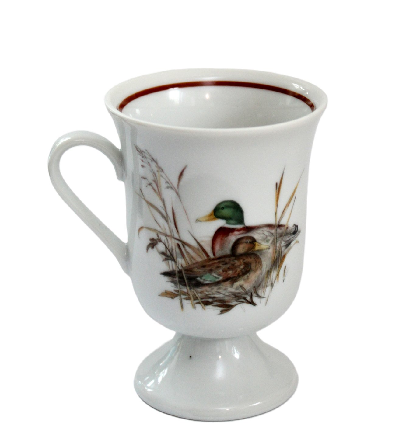 Jagtstellet designet af Mads Stage for Imerco. Irish Coffee krus på fod. Gråand. Højde 11 cm. Diameter 8 cm. Pris: 175 kr. stk. Lager: 3