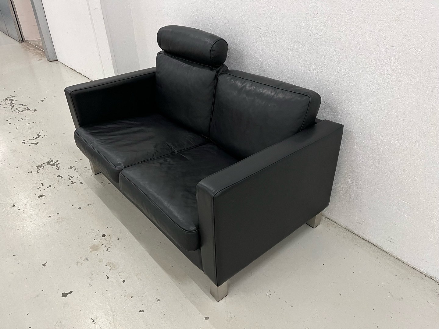 Mogens Hansen MH321 2 Pers. Sofa i sort prestige læder og med ben i børstet stål. Nypris 35.403,-