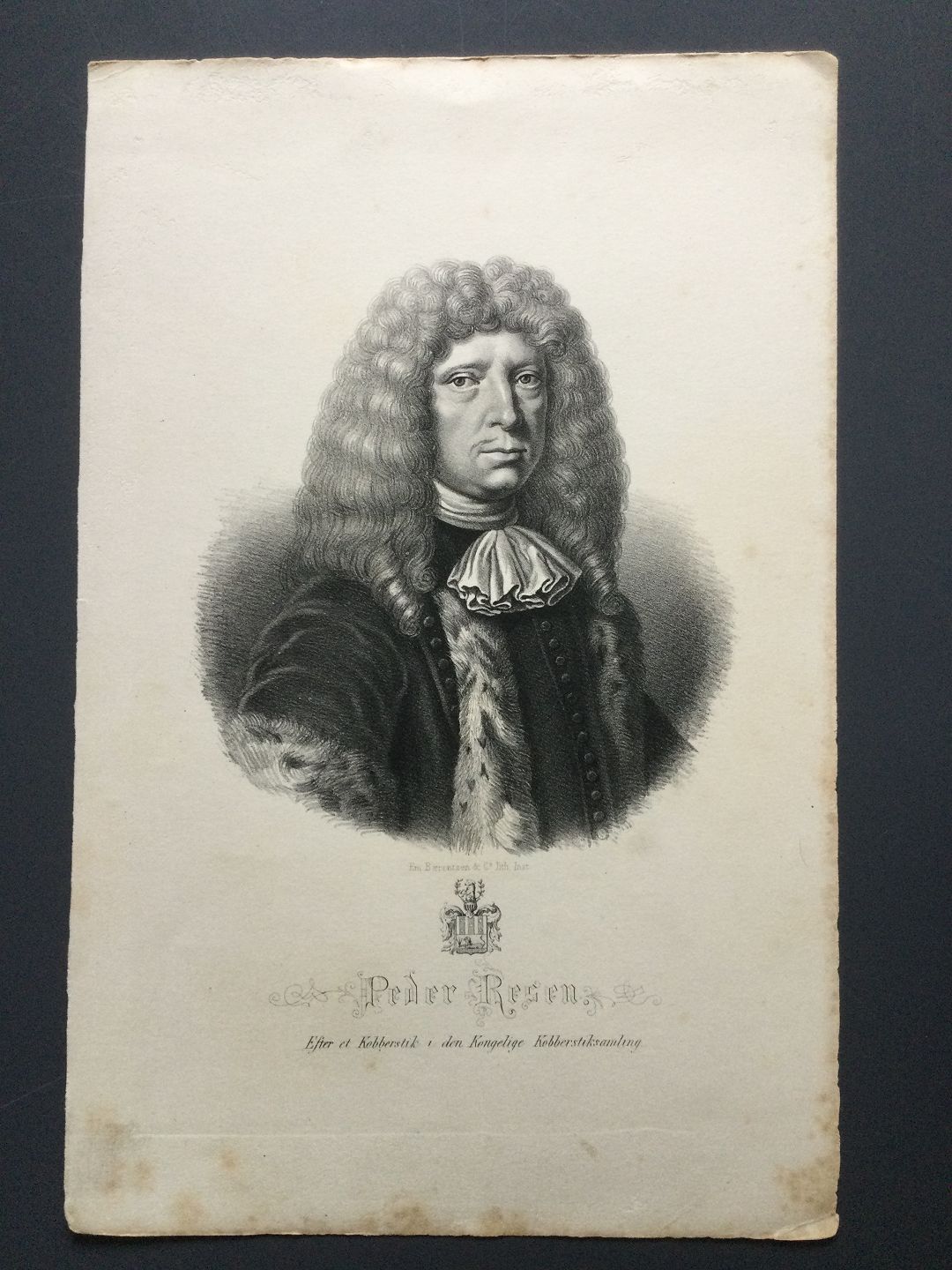 Litografi af Em. Bærentzen - Portræt af Jurist og historiker Peder Hansen Resen.