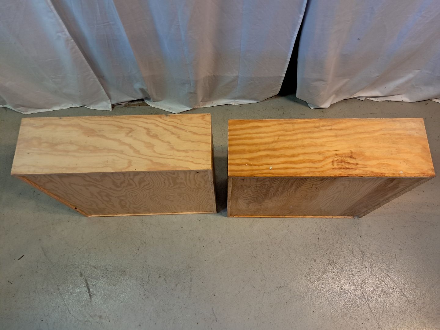 2 Reolkasser i krydsfiner, fra 1990erne.