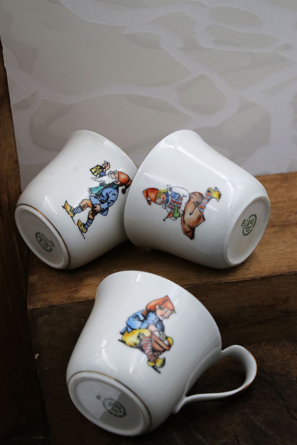 Bing & Grøndahl høj hanks kopper med julemotiver og guldkant.