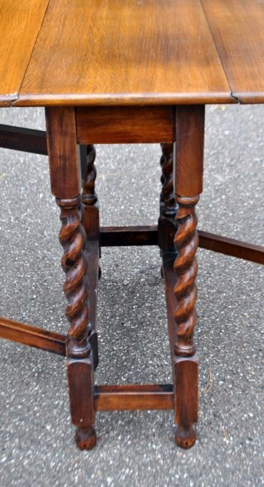 Engelsk gateleg bord i ege træ, 19. årh. Med drejede ben. H.: 74 cm. B.: 75,5 cm. D: 30 cm. Udslået: 133 cm.