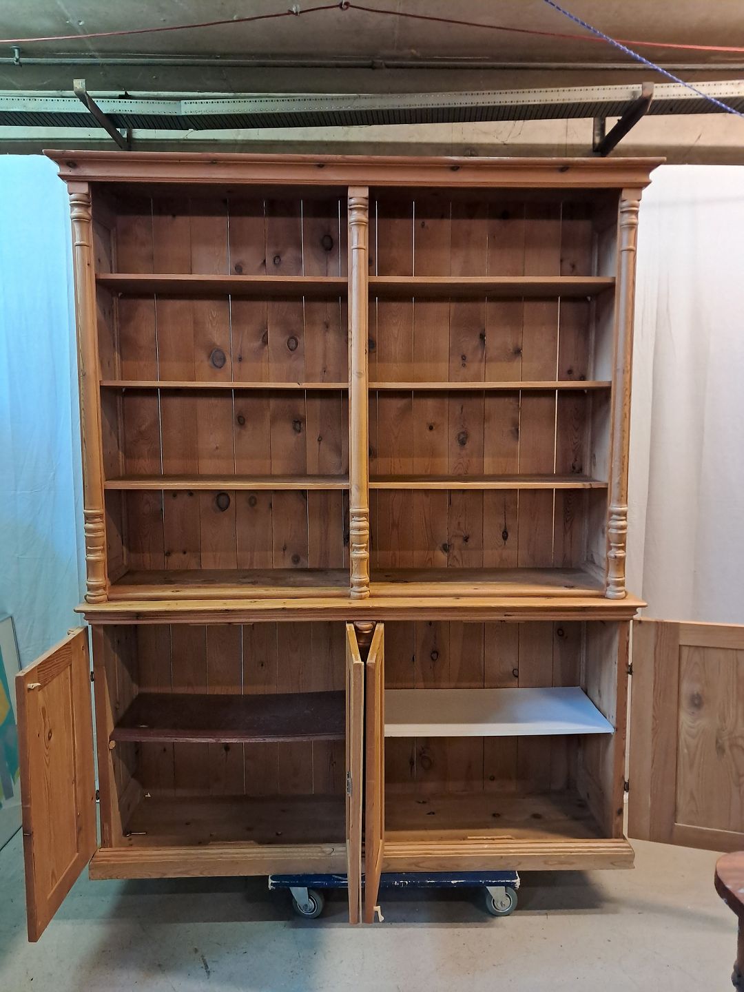 Skab med reol overdel i massivt fyrretræ, fra 1980erne.