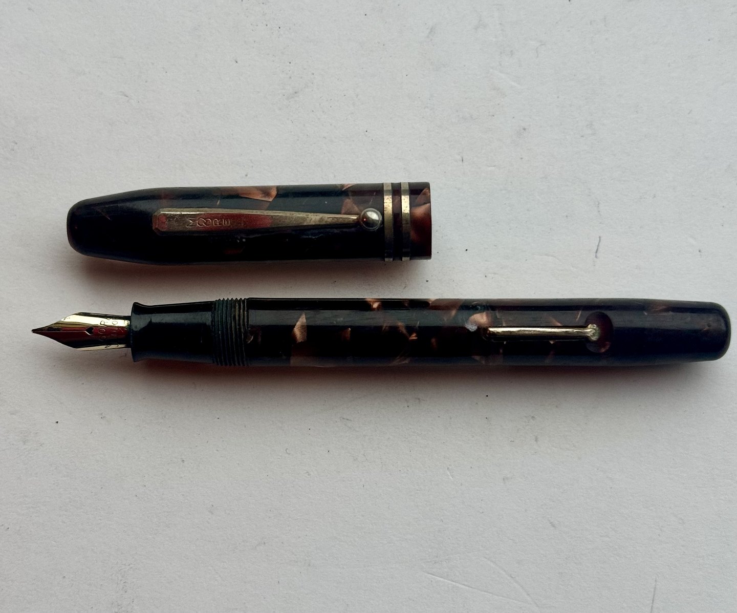 Grøn marmoreret fyldepen fra The Moore Pen Co.
