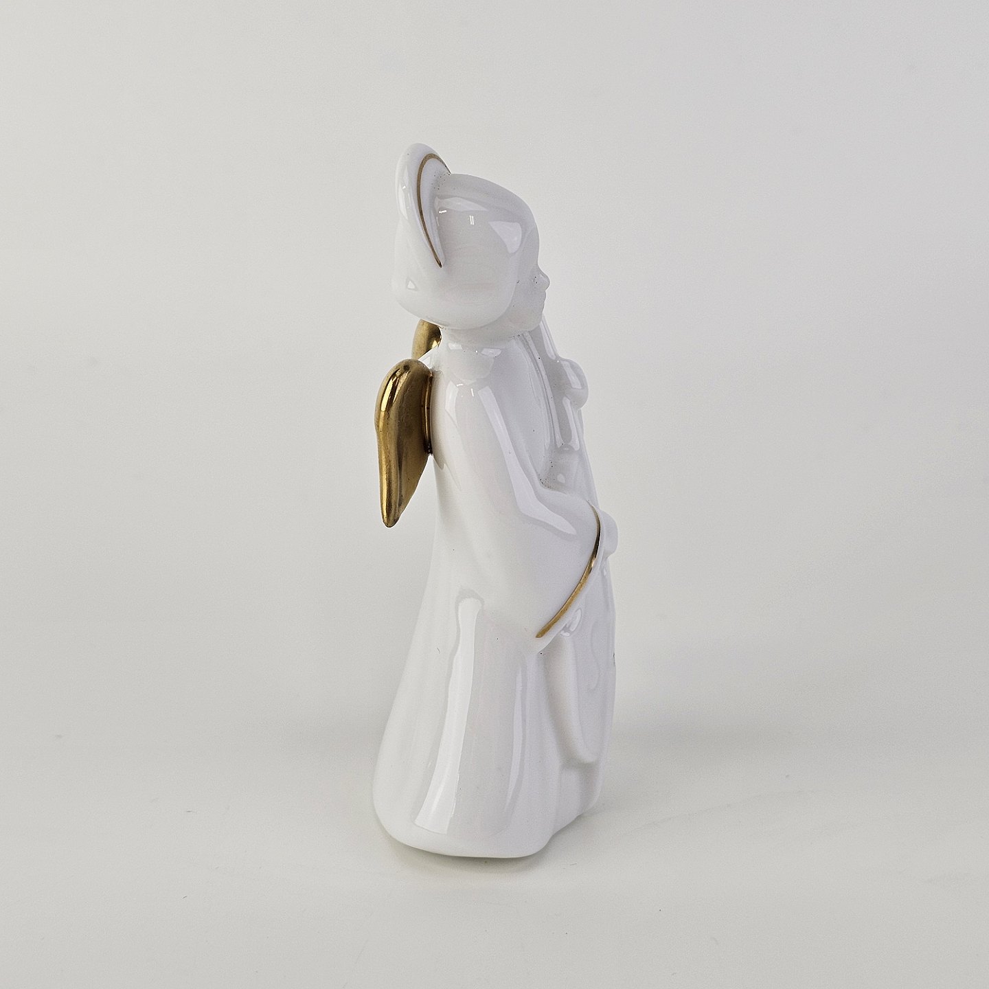 Figur med motiv af en engel som spiller på viola. Figuren er i hvidt porcelæn med forgyldte vinger og detaljer i 24 karat guld.