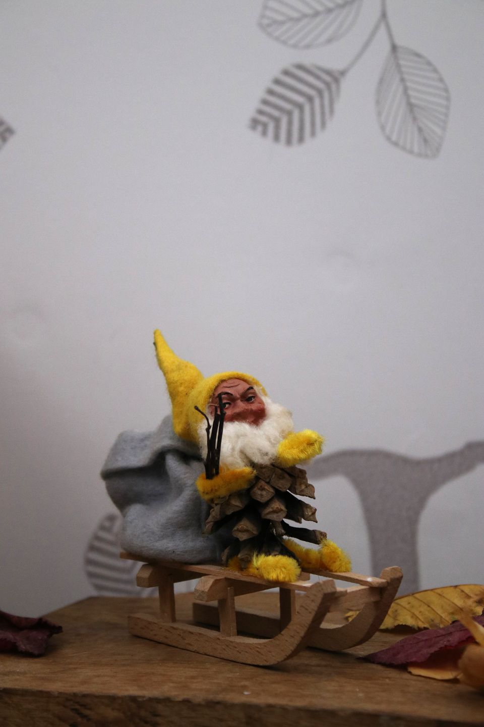 Gammel nisse på trækælk...
