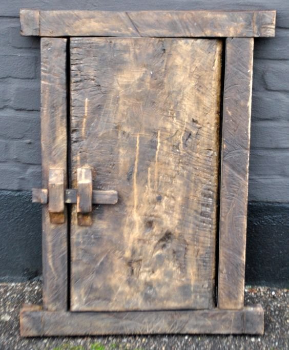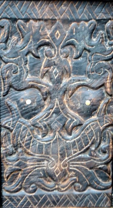 Afrikansk dør i træ med udskæringer. Med slå på bagside. H: 71,5 cm. B: 53 cm.