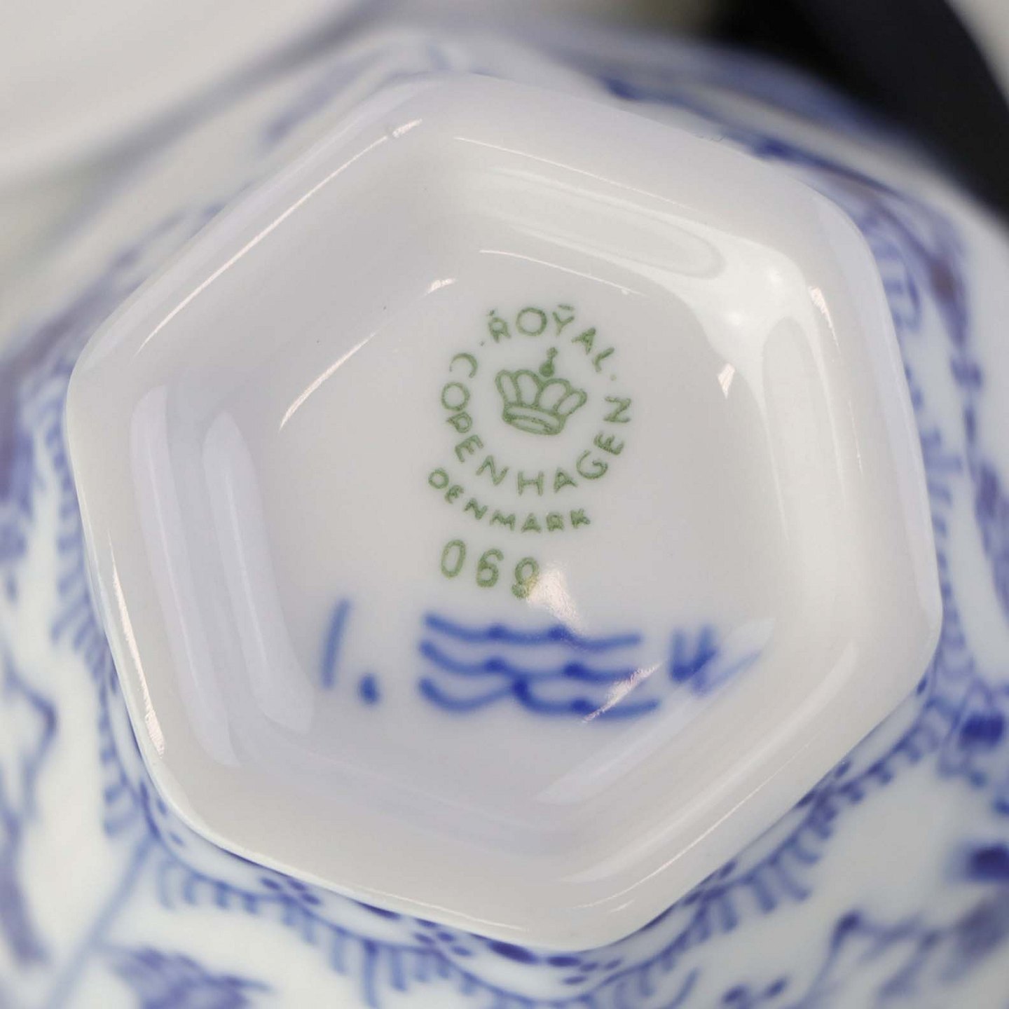Kaffekop med underkop i kongeligt porcelæn fra stellet Musselmalet Helblonde. Nr. 069 og 1/1036