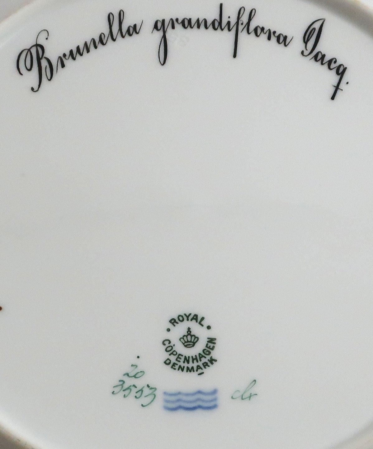 Royal Copenhagen. Flora Danica tallerken med gennemskåret bort. Diameter 25 cm. Model 3553. ( 1 sortering ). Brunella grandiflora