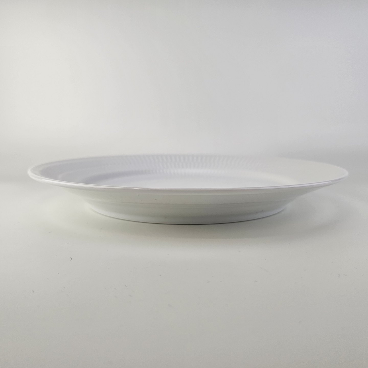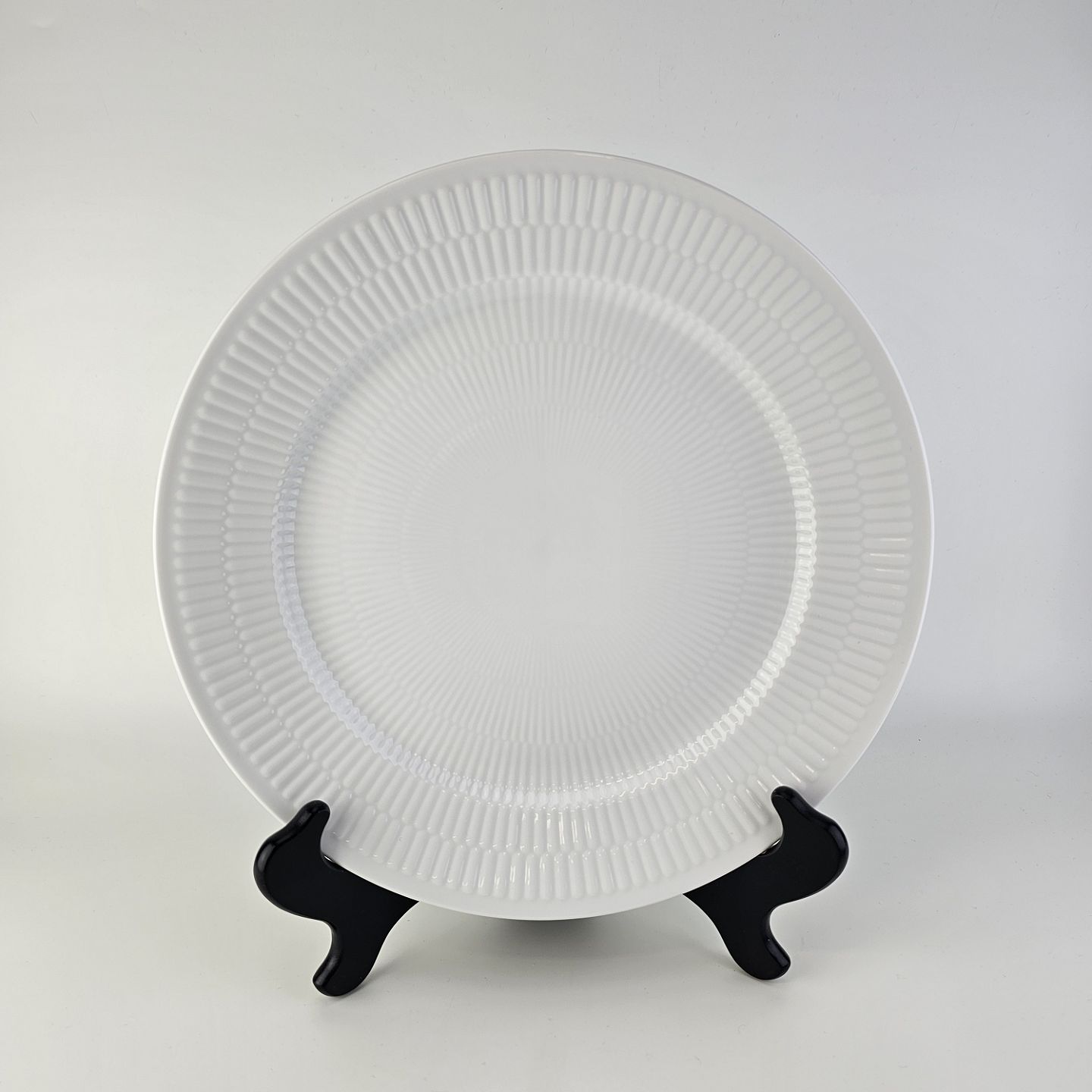 Flad middagstallerken i kongeligt porcelæn fra stellet Hvid Riflet