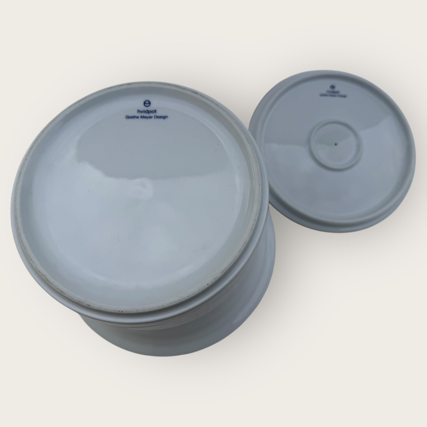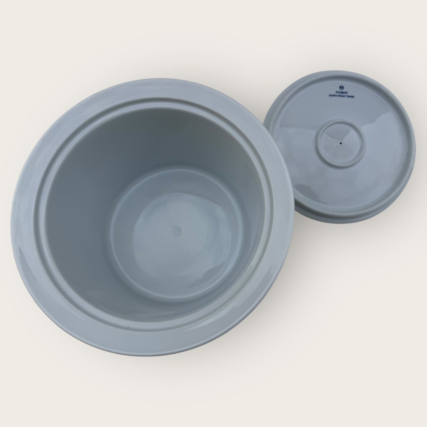 | Hvidpot, Royal Copenhagen og COOP, Stor skål med låg, 22cm i diameter, 14,5cm høj, 1.sortering, Design Grethe Meyer *Perfekt stand*
