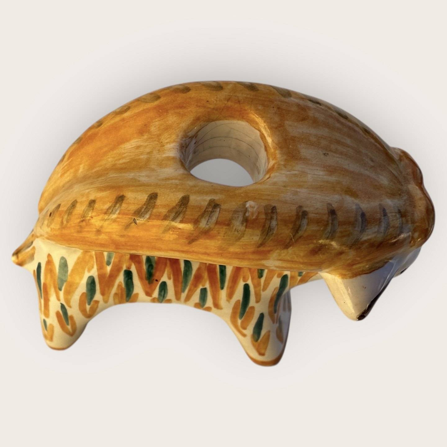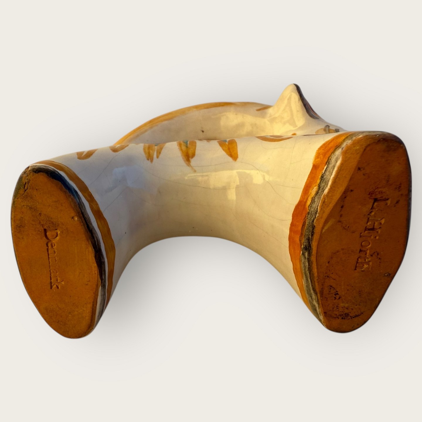 L. Hjorth, Keramikfigur, gedebuk, fabeldyr, lysestage, Ca. 7,5x9cm *Fin stand*