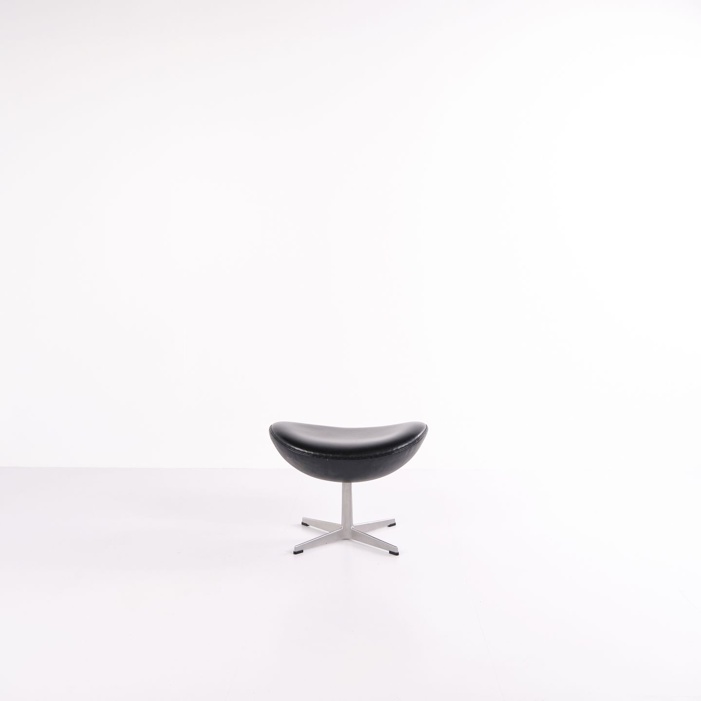 Skammel til Ægget, designet af Arne Jacobsen og produceret af Fritz Hansen i 2006. Betrukket med sort Elegance læder og monteret på aluminium stjernefod — samme høje kvalitet og opmærksomhed på detaljer som på originalmodellen. En diskret og solid tilføjelse, der gør stolen komplet og fuldender den elegante helhed.