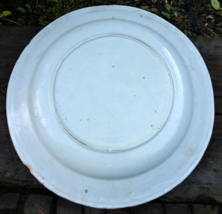 Fransk fajance fad, 19. årh. Hvid bund dekoreret med blomst. Dia: 31,5 cm.