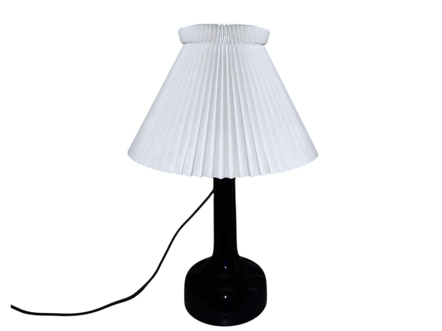 Stor mørkeblå bordlampe med tilhørende Le Klint skærm.