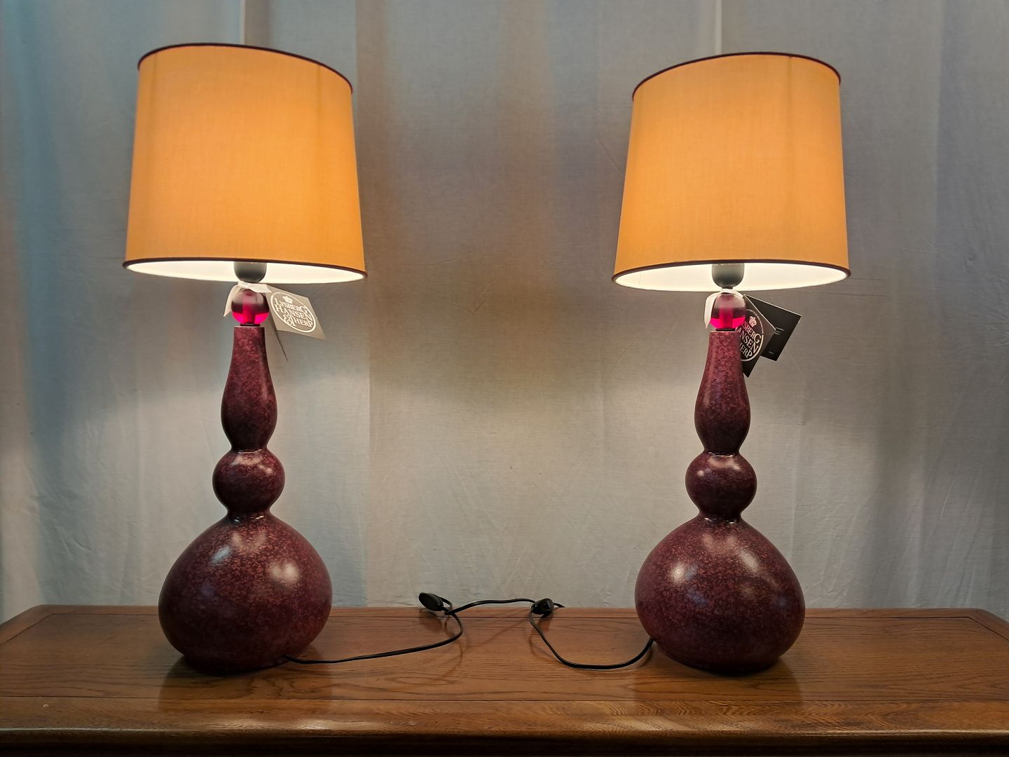 2 Lysberg Hansen og Therp bordlamper i pocelæn med skærme, fra 2000erne.