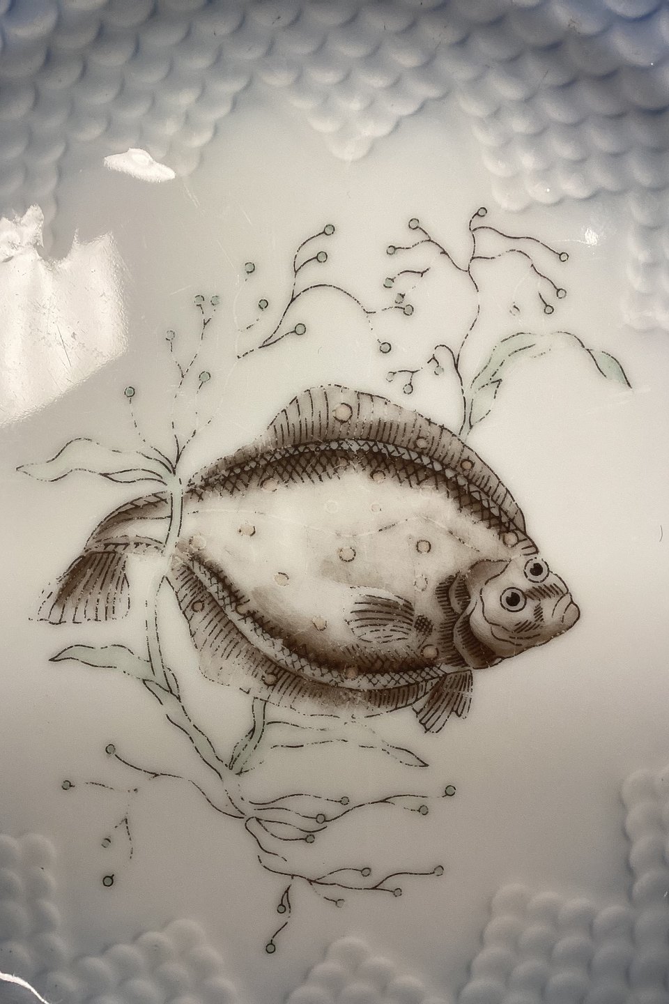 Bing og Grøndahl Blå Tone Fisketallerken Motiv 3 Rødspætte No. 716 - SKÅRET/SLIDT