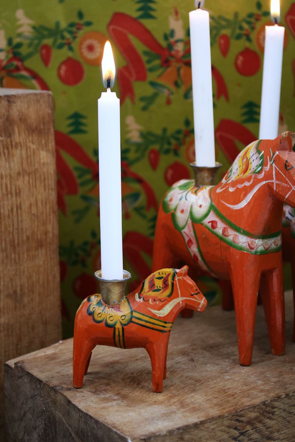 Gammel svensk Dalarhest julelysestage