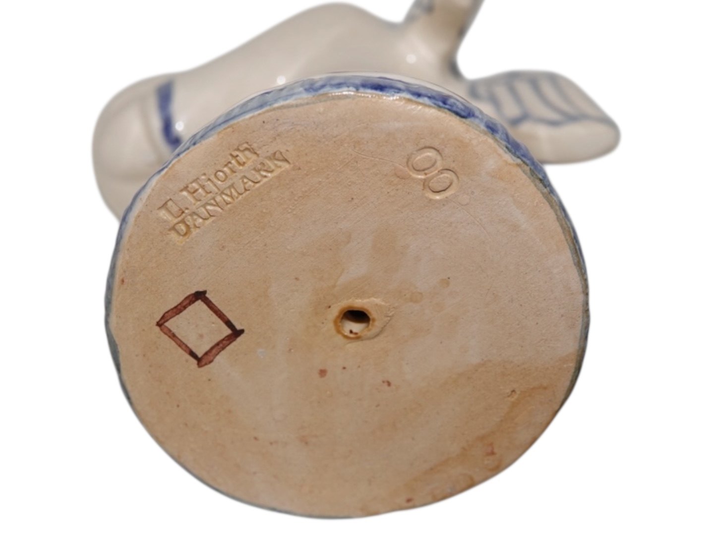 Hjorth Keramik, engel figur / lysestage med cremehvid og blå dekoration.