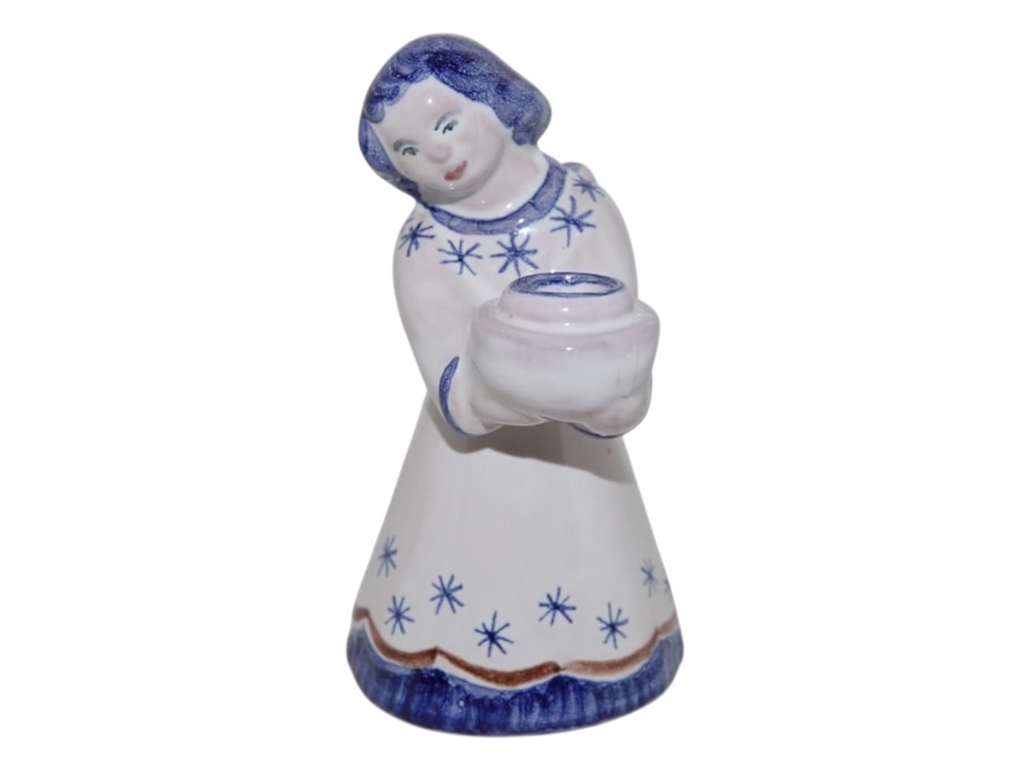 Hjorth Keramik, engel figur / lysestage med hvid og blå dekoration.