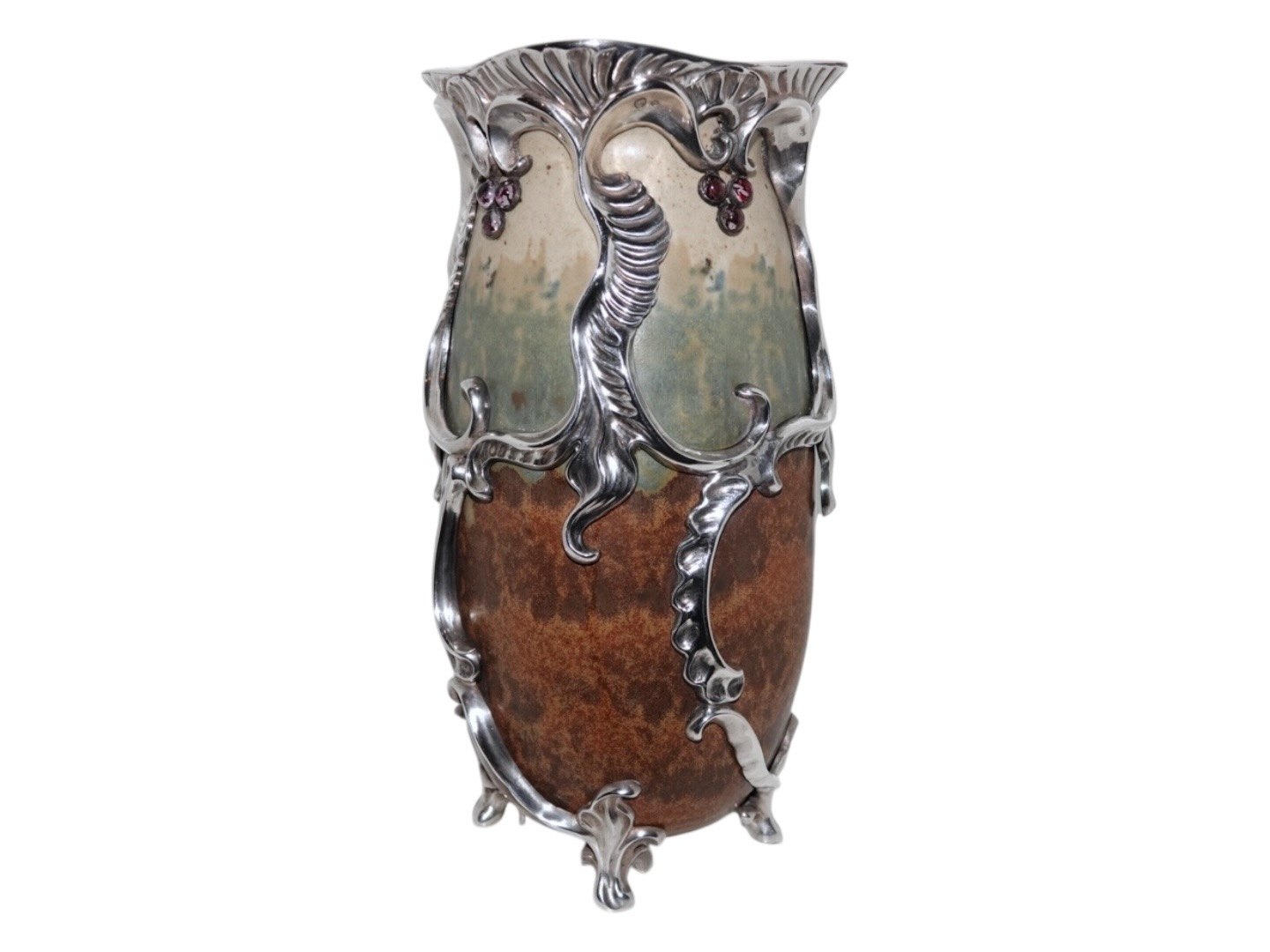 Stor Patrick Nordstrøm vase med ekstravagant sølvmontering