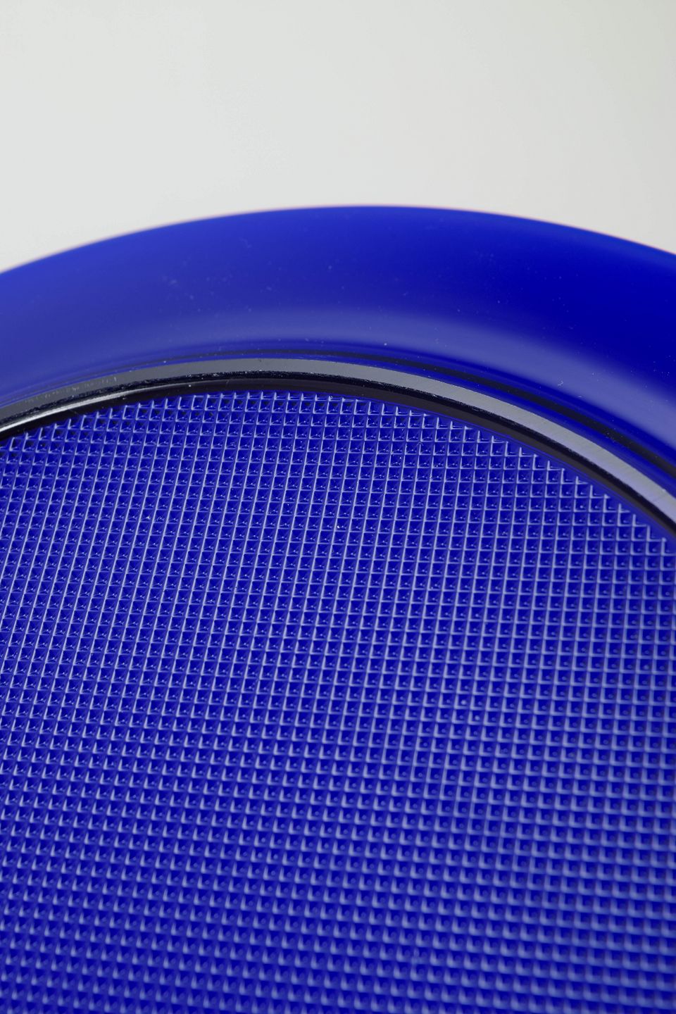 Sæt på seks dybblå dæktallerkener i tykt, transparent kunstglas. Den klare, mættede koboltblå farve og den enkle runde form giver et elegant og tidstypisk udtryk, typisk for skandinavisk glasdesign fra 1980’erne.