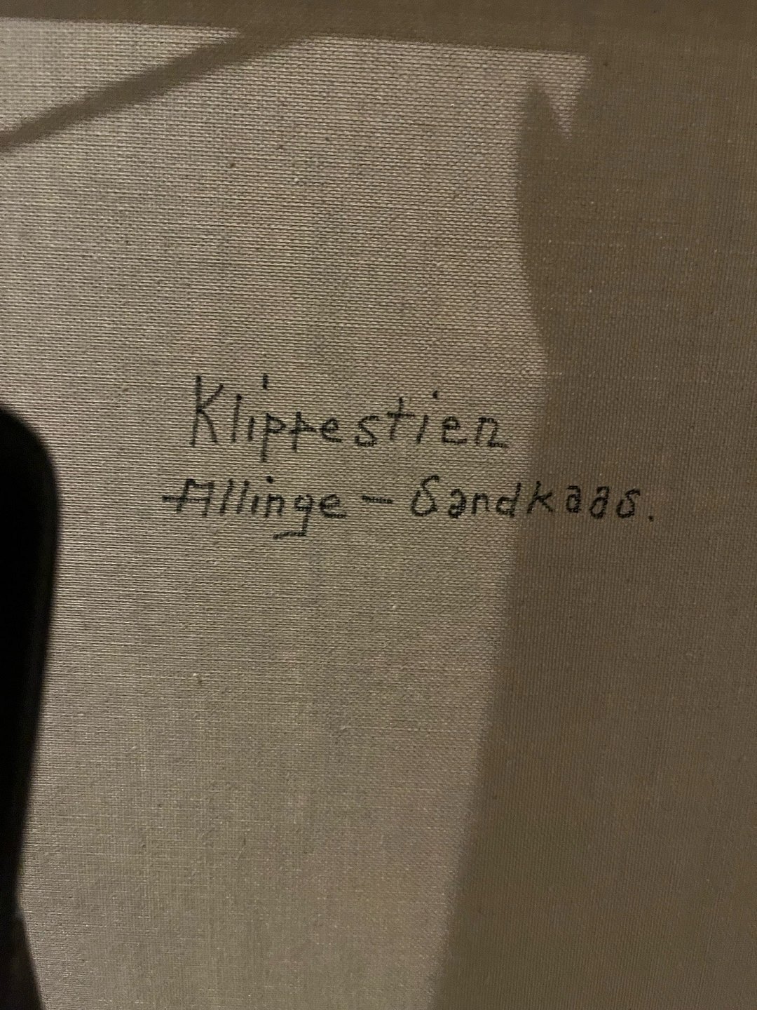Maleriet er et landskabsmotiv indrammet i en guldramme og skildrer en kyststrækning med klipper, vegetation og hav. Værker af denne karakter forbindes ofte med motiver fra Bornholm samt med kunstnere som Louis Bendisen og Jens Aabo.