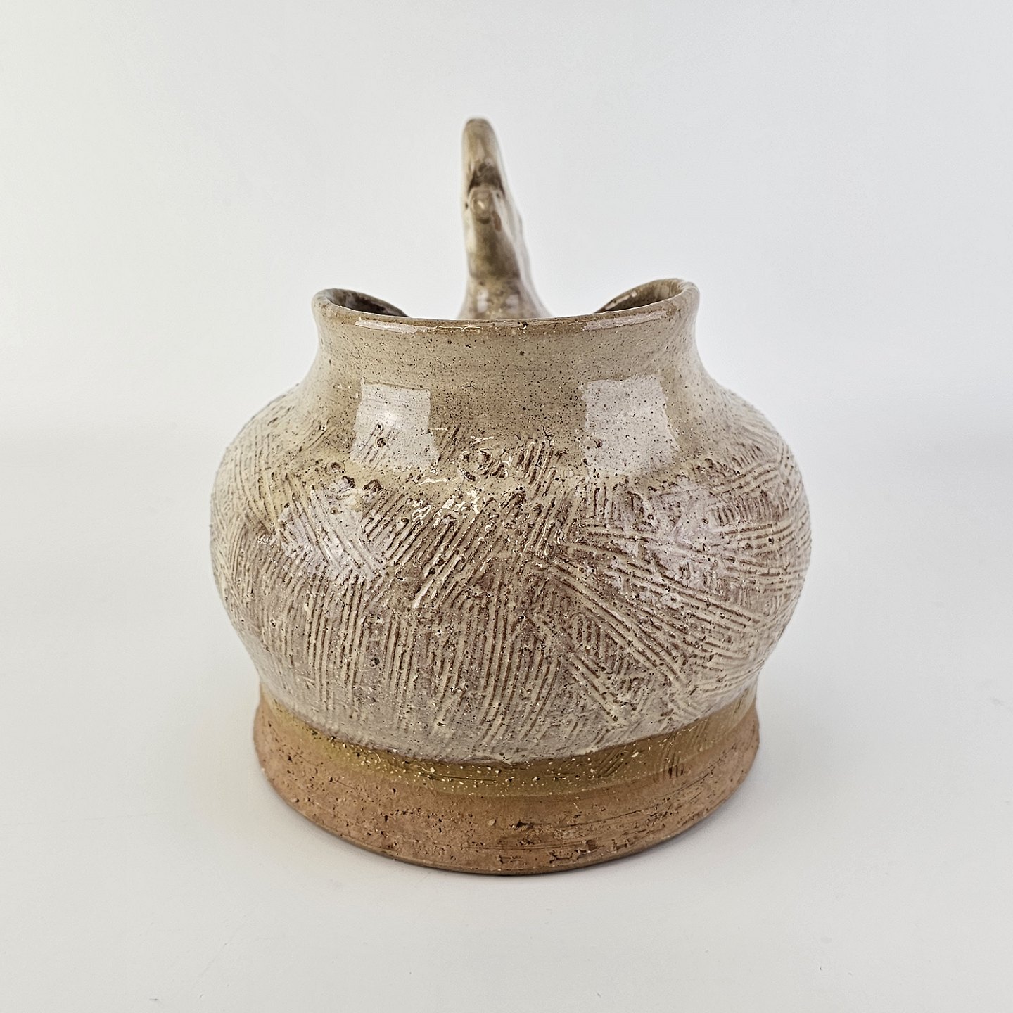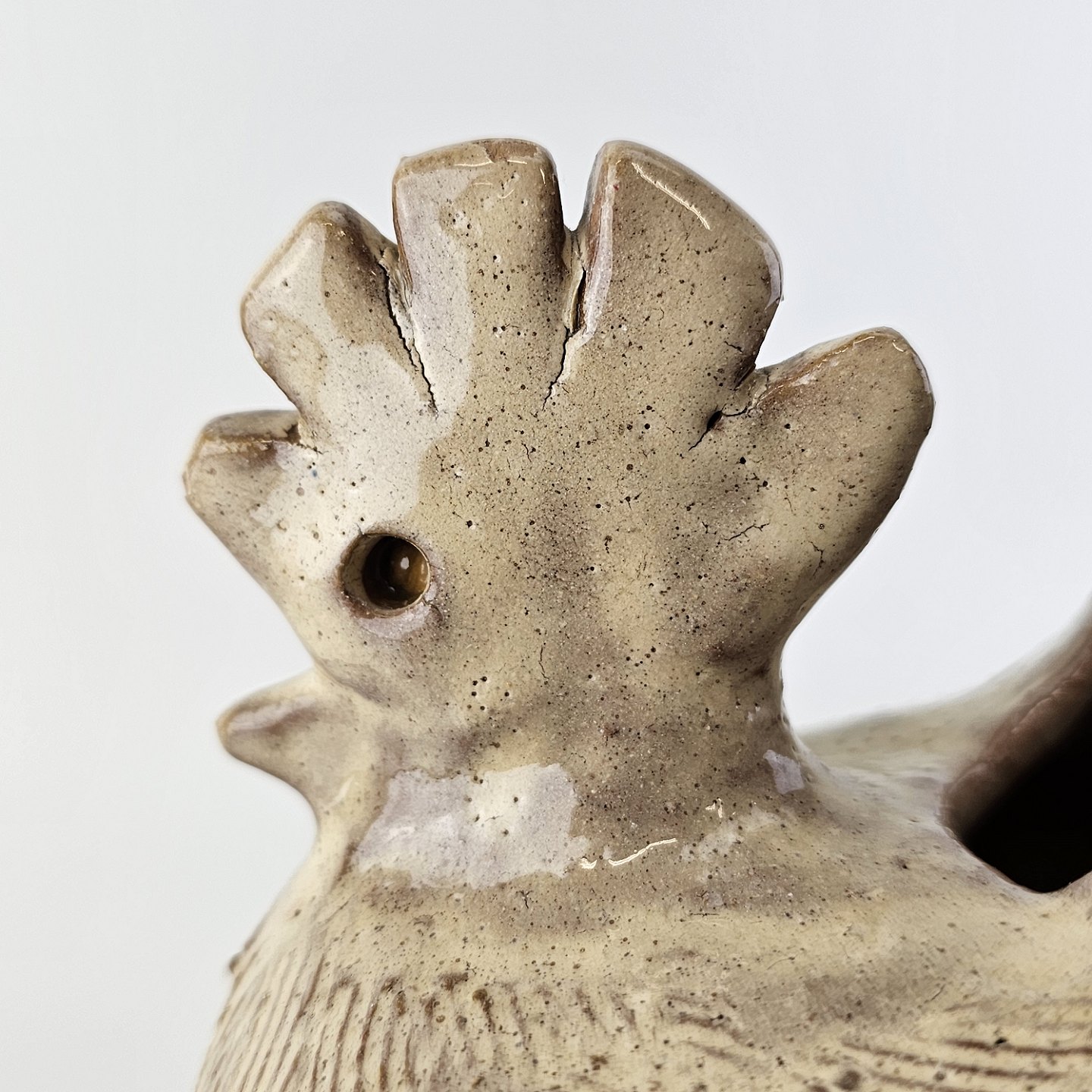 Krukke med form som en høne i brunlig glaseret keramik