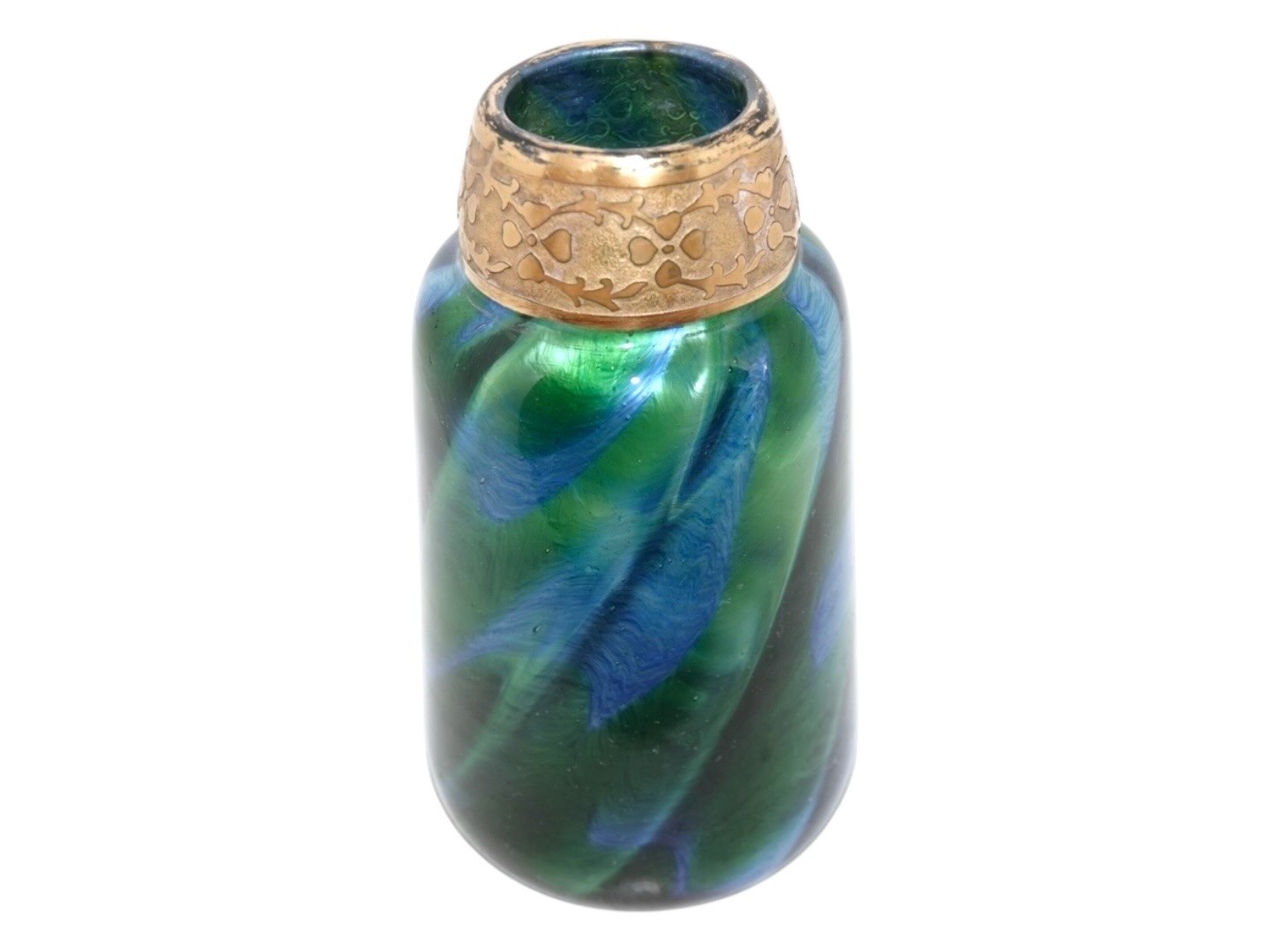 Bøhmisk glas vase med grønne og blå farver fra omkring 1900 til 1920.