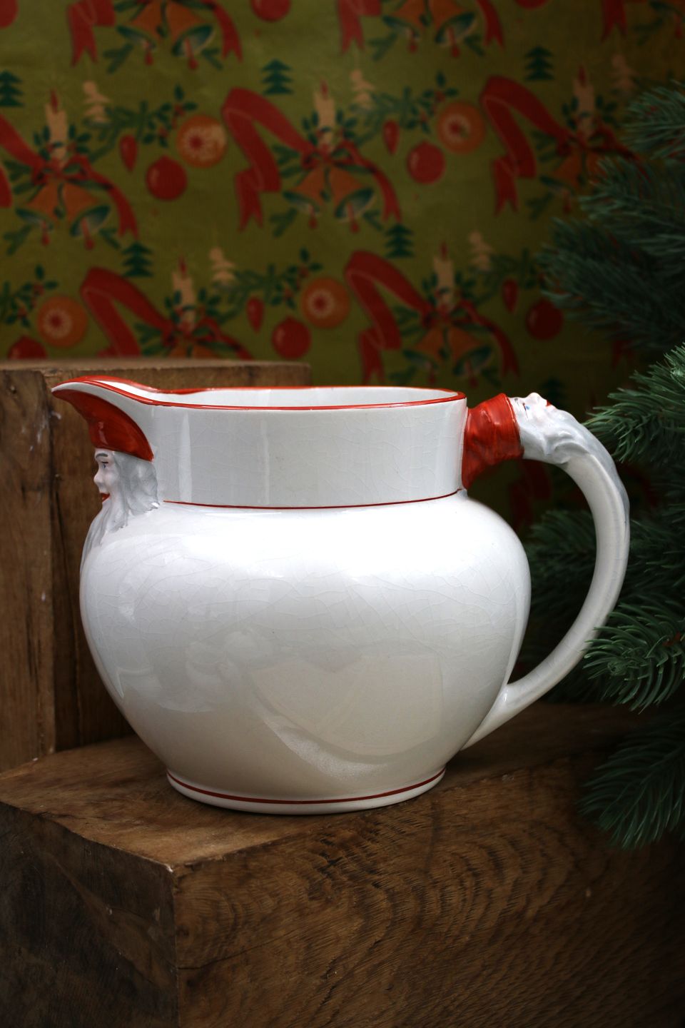STOR gammel svensk "Herregårds" julekande i fajance med nisser på hældetuden og på hanken. H:15m...