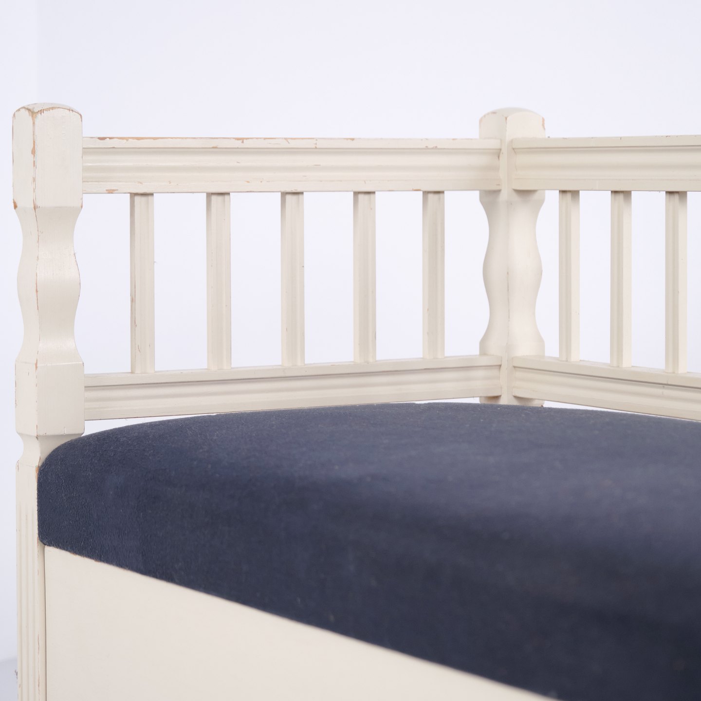 Antik Slagbænk - Gustaviansk Stil - Hvidmalet & Polstret Sæde - År 1890