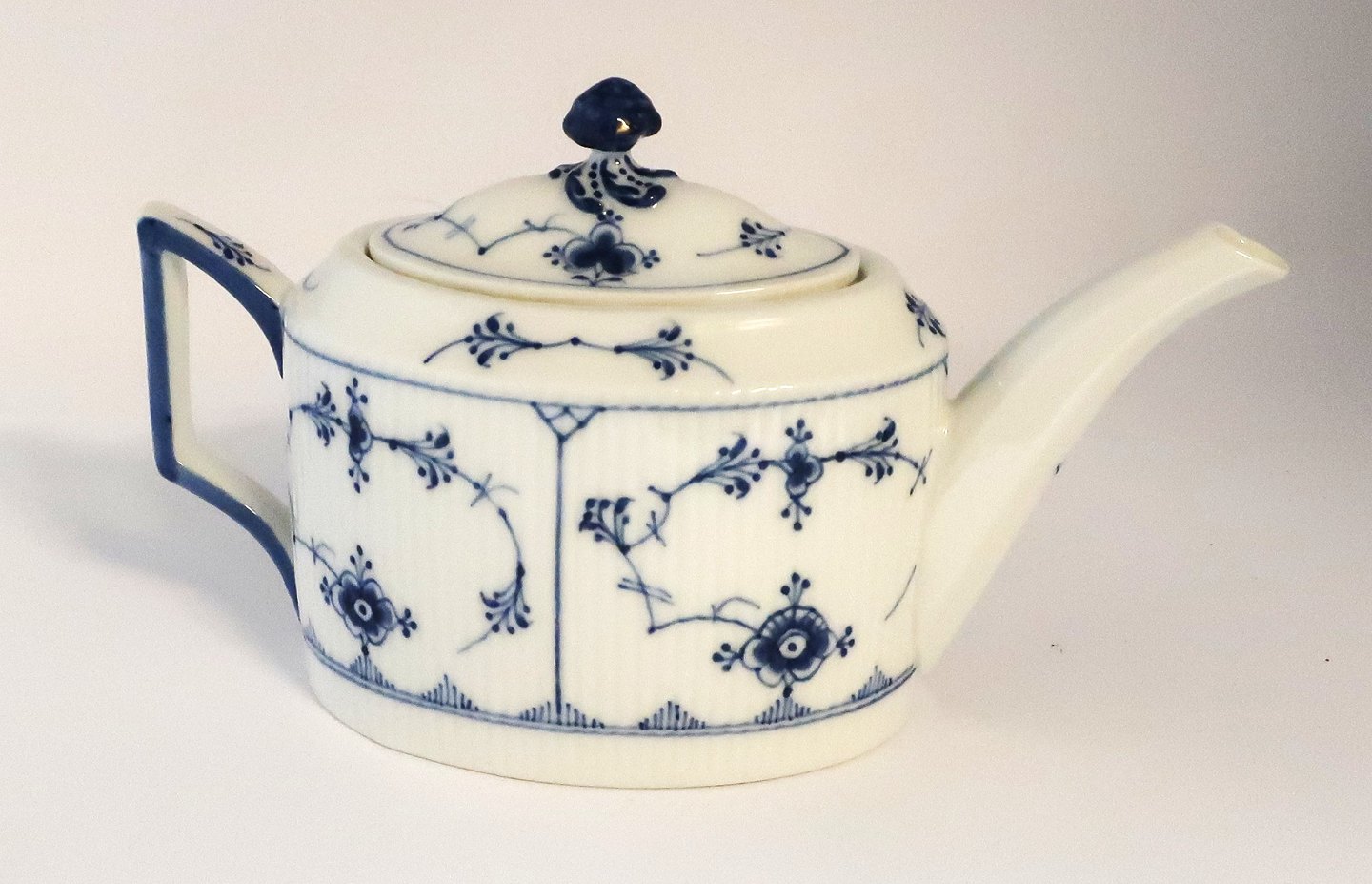 Royal Copenhagen. Blue fluted, plain. Teapot. Model 253. Height 13 cm. Length 22 cm. (2 quality). Produced before 1923