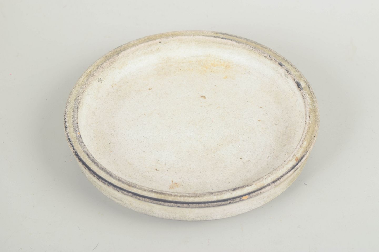Low, circular stoneware bowl with a restrained architectural form and subtly profiled rim. The light, muted glaze in cream and sand tones highlights Svend Hammershøi’s characteristic emphasis on proportion, surface, and material presence. A classic example of Kähler’s functional and timeless design language from the interwar period.