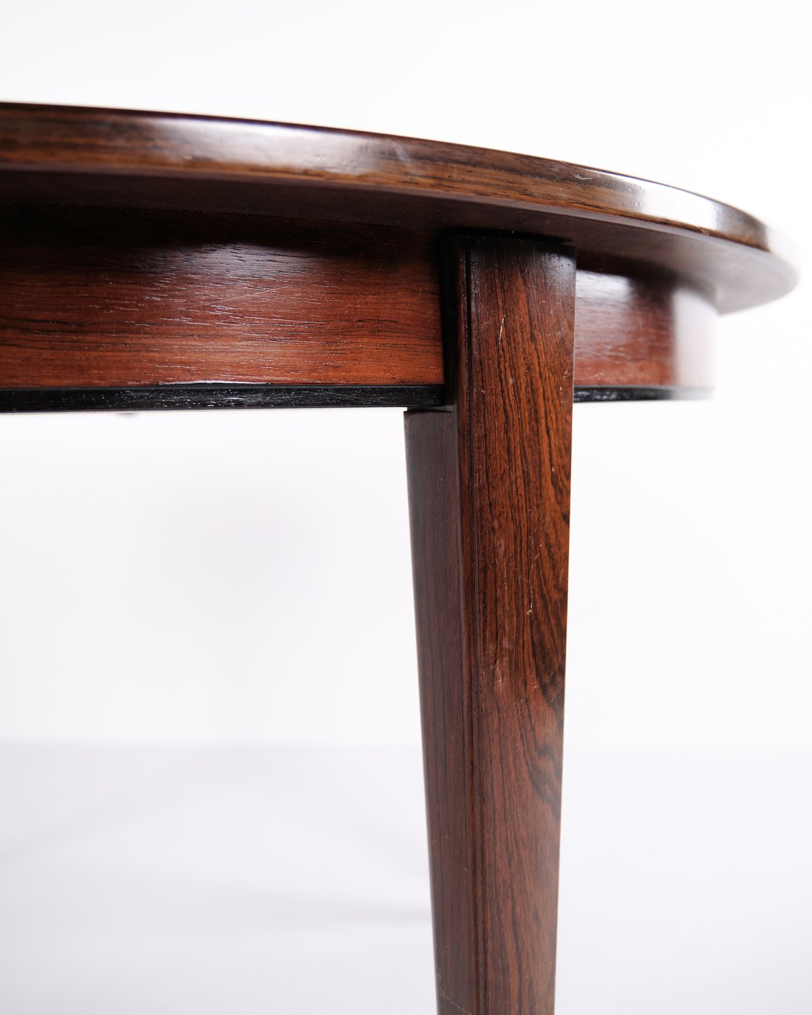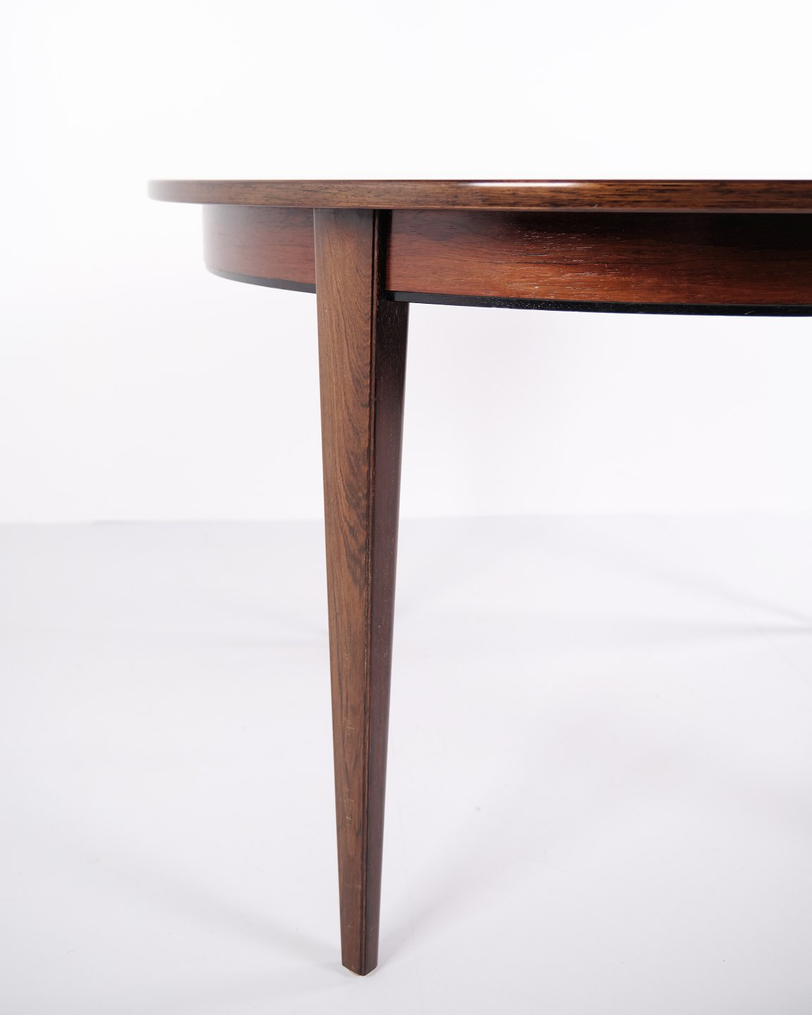 Rundt spisebord model 55 i palisander, designet af Gunni Omann for Omann Jun Møbelfabrik. Med 3 tillægsplader. Dansk design fra 1960’erne.