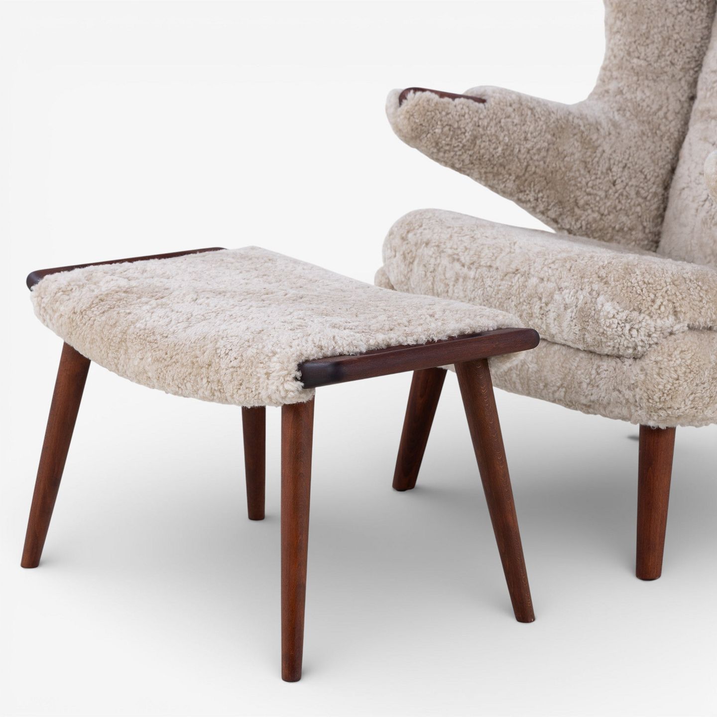 AP 19 - Nybetrukket Bamsestol i lammeskind (farve: Moonlight) m. skammel.