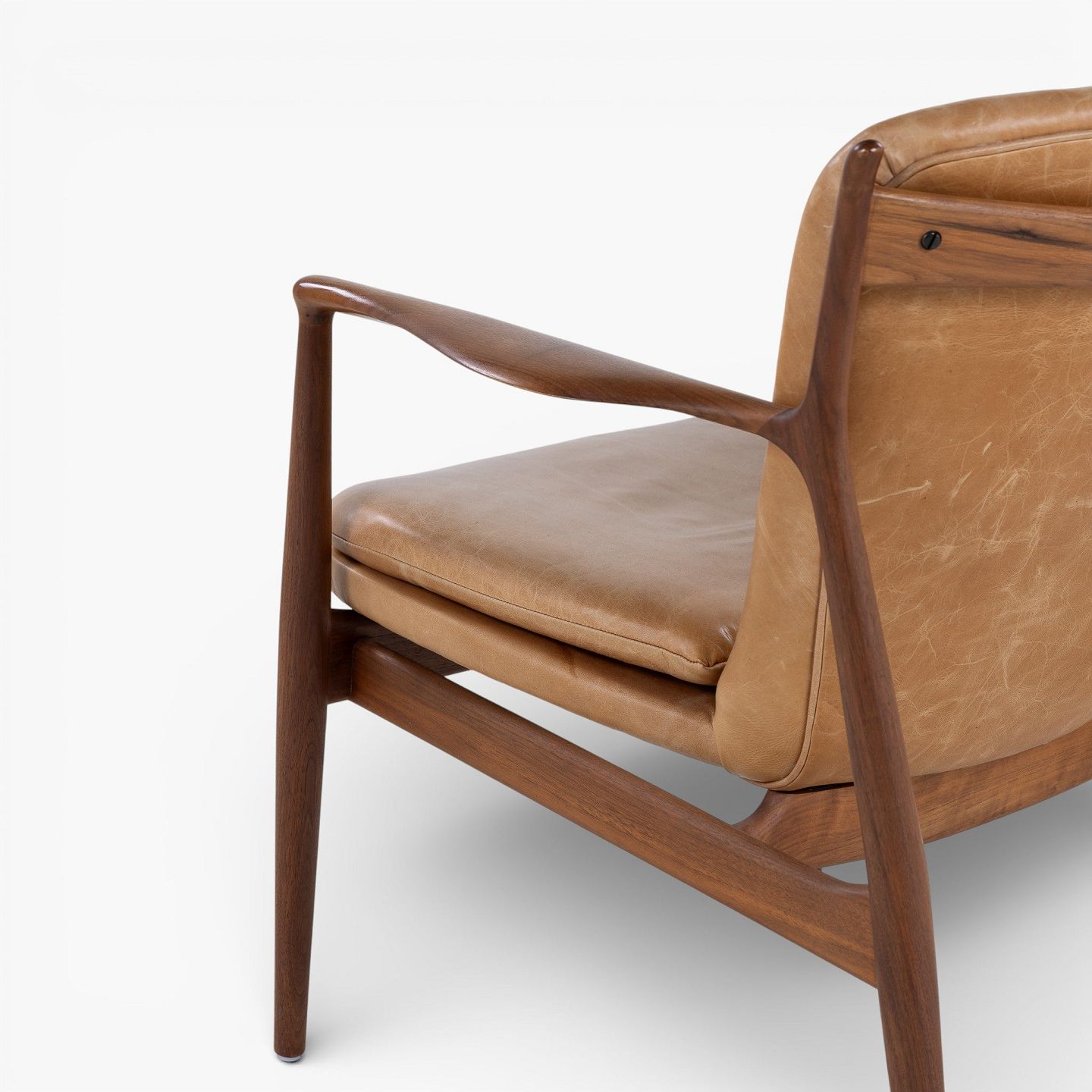 FJ 51 - Par 'Delegeret stolen'-lænestole i valnød og patineret naturlæder. Formgivet i 1951.