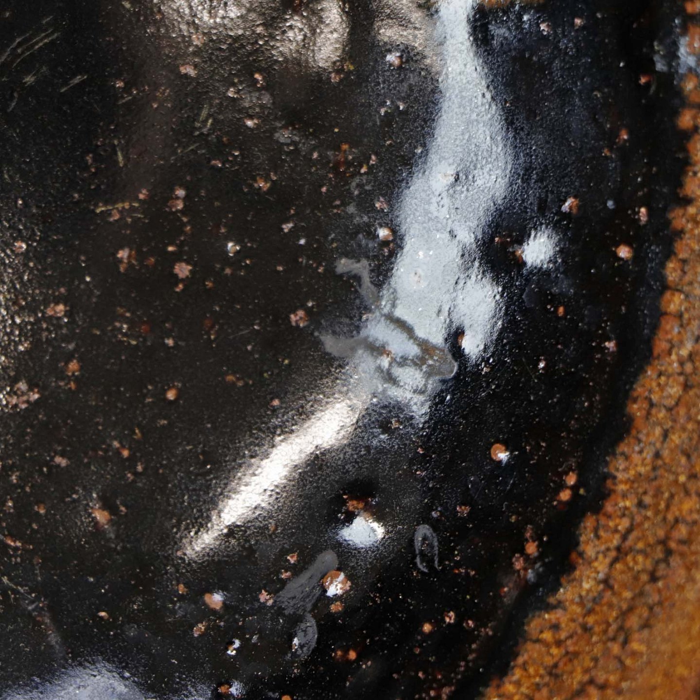 Skål i stentøj med delvist nubret glasur i brunlige nuancer og cirkelformet mønster i bunden.
