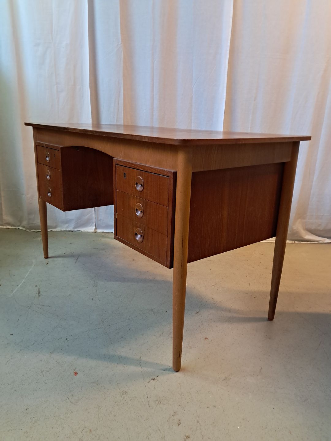 Skrivebord i fineret teaktræ, fra 1960erne.