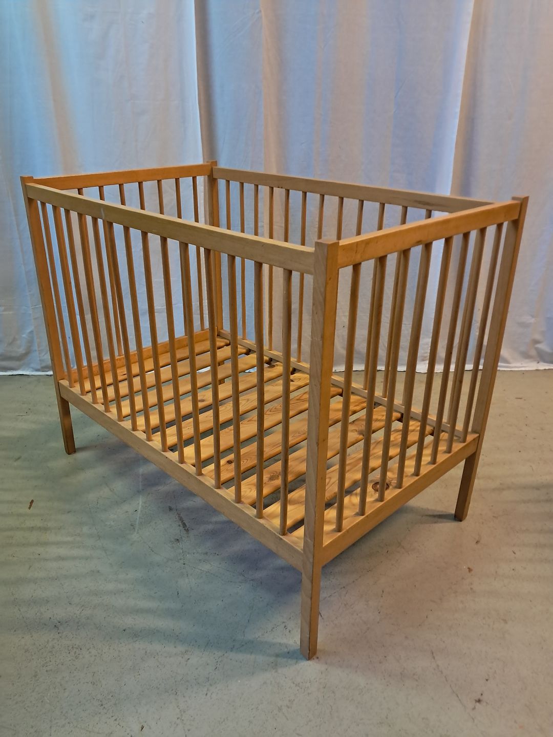 Barneseng i massivt bøgetræ, fra 1970erne.