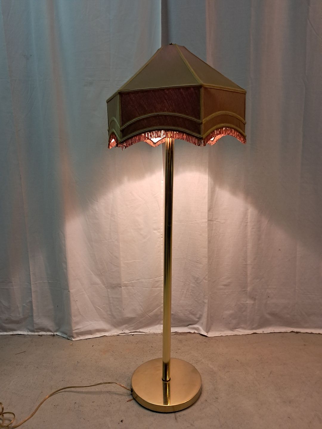 Gulvlampe i metal med lampeskærm, fra 1990erne.