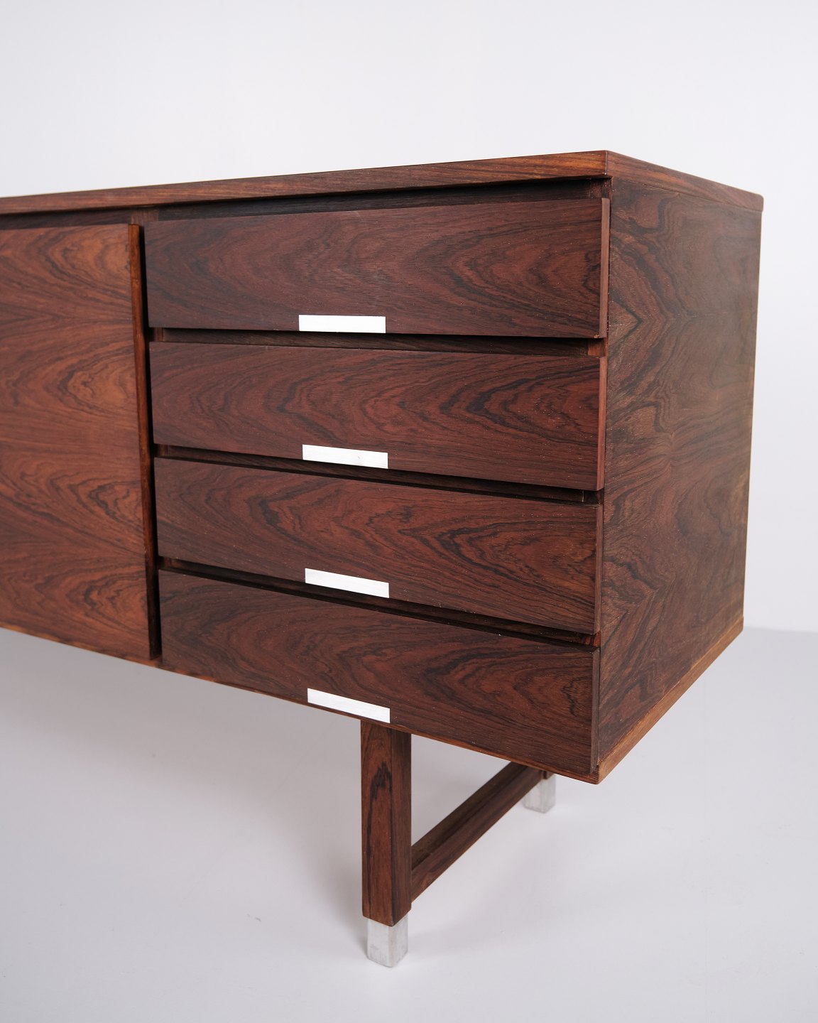 Skænk i palisander designet af Kai Kristiansen for Feldballes Møbelfabrik. Dansk design fra 1960’erne med alu greb og fødder.