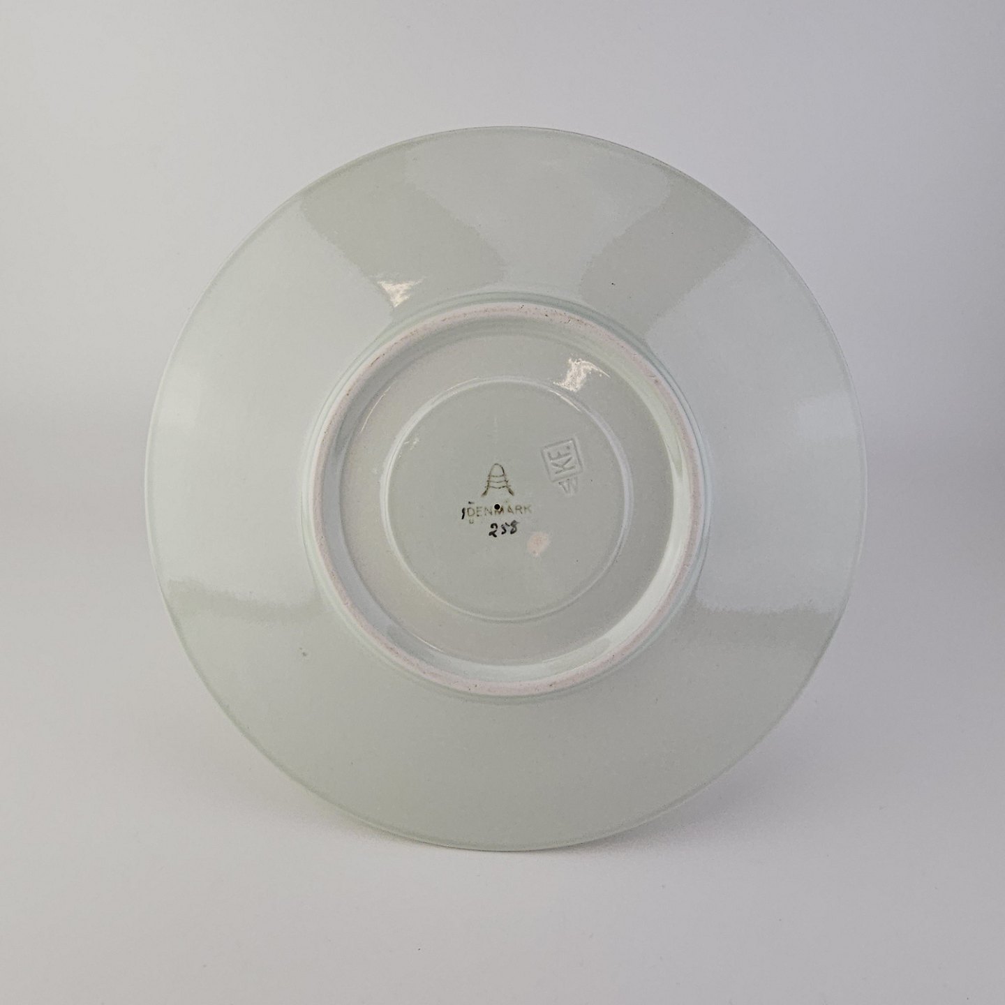 Stel i lysegrøn fajance med natur dekoration og flettet kant