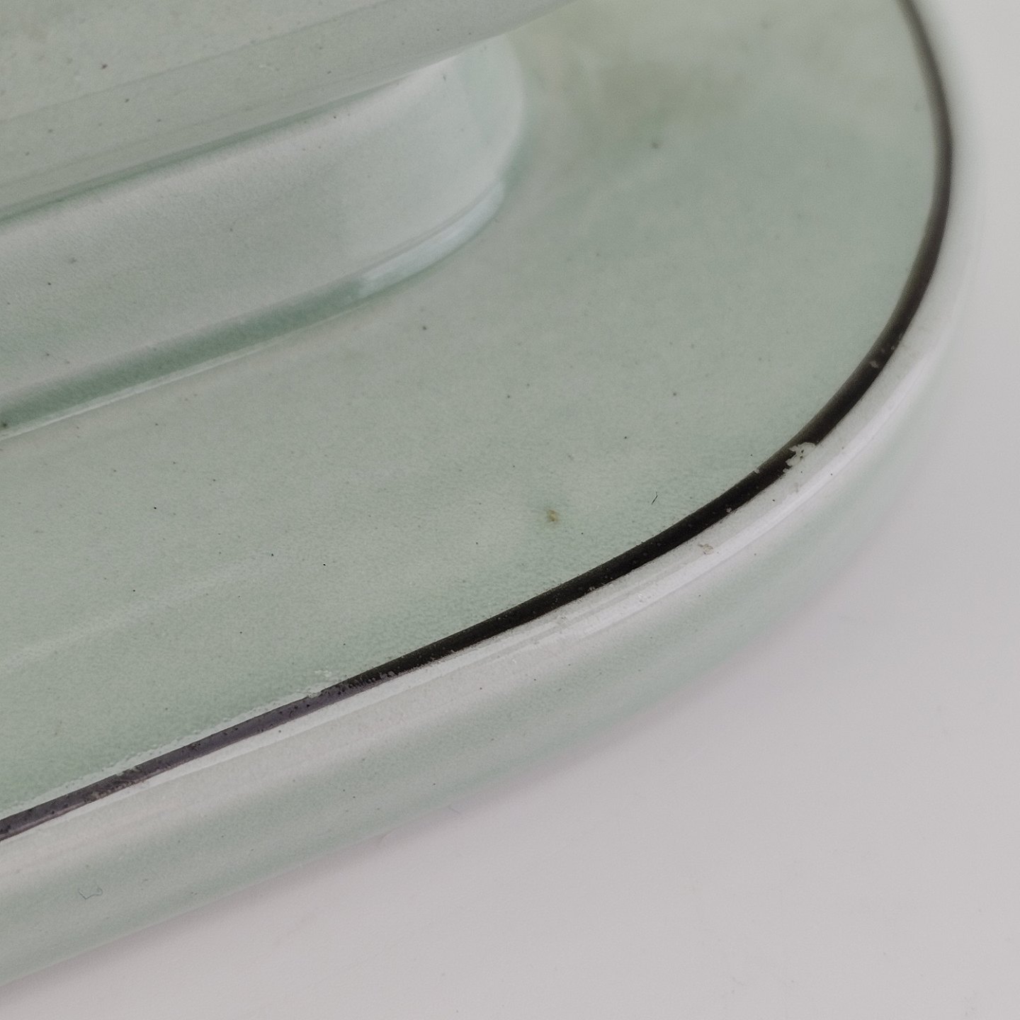 Stel i lysegrøn fajance med natur dekoration og flettet kant