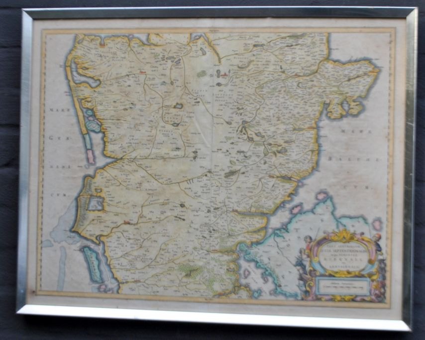 Frederik de Witt (17. årh.) Holland: Specialkort over Ribe og Aarhus bispedømmer. ca. 1660. Håndkoloreret kobberstik. Usigneret. 44 x 58 cm. Latinsk udgave.