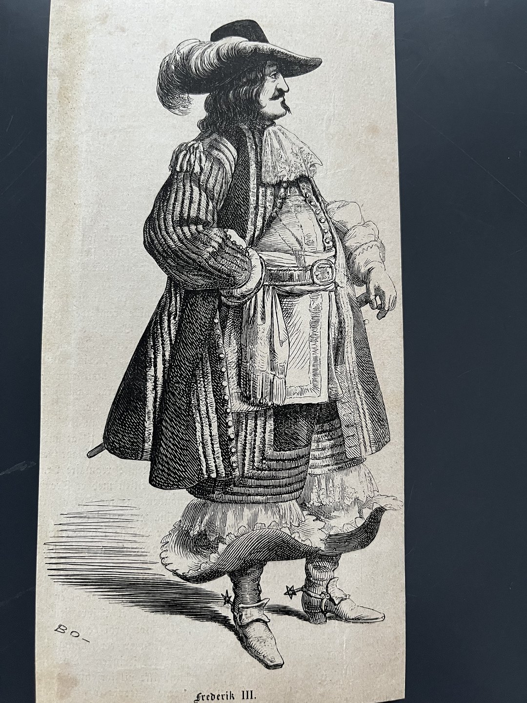 4 Xylografier af Bernhard Olsen - DH Kong Frederik III, IV, V og VI.