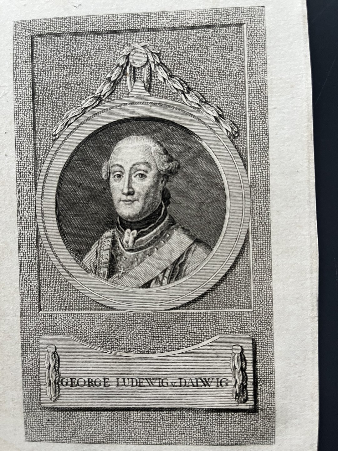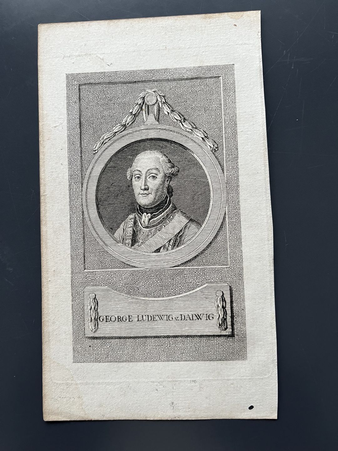 Kobberstik - Portræt af Preussisk Kavalerigeneral Baron Georg Ludwig von Dalwig.