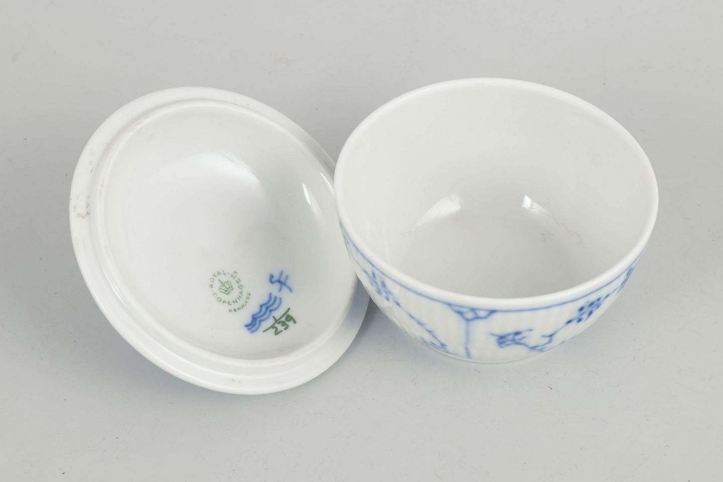 Royal Copenhagen, sukkerskål, Musselmalet riflet.
