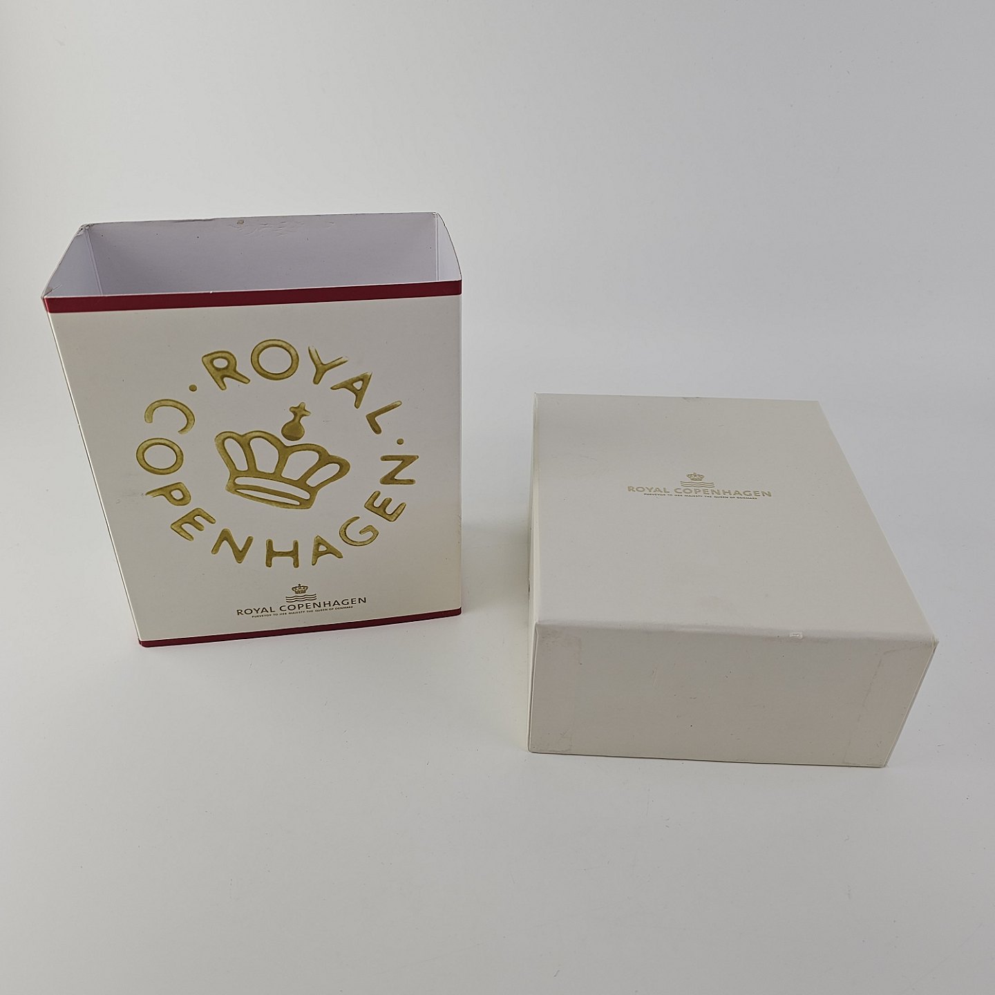 Juleornamenter i glas med motiv af en klokke og en aflang julekugle med rødt bånd til ophæng